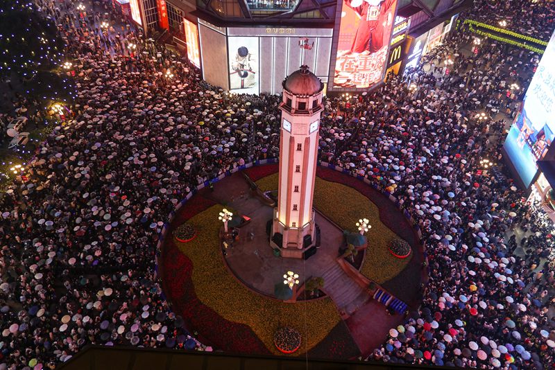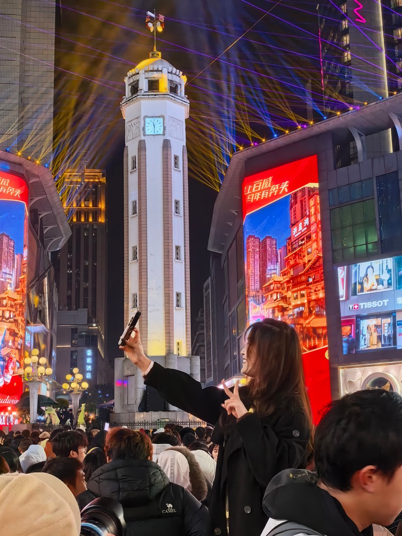 2025年12月31日晚,上万市民齐聚渝中区解放碑,聆听新年钟声,拍下跨年瞬间,一起迎接新年的到来。