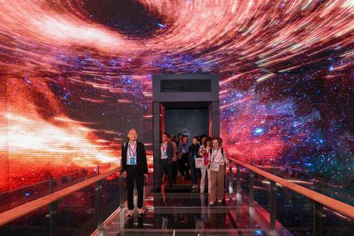 ▲4月23日,重庆南岸区规划展览馆,“知名港商重庆行”部分成员正在参观。 记者 尹诗语 摄 在两江交汇处读懂城市活力 22日晚,当嘉宾们乘船考察两江四岸风貌时,璀璨的灯火与现代化的无人机表演交相辉映,瞬间点燃了考察团的热情。