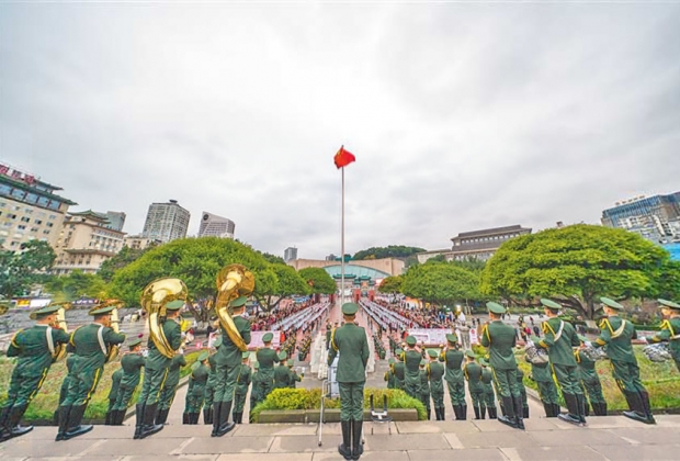1月1日,2026年元旦升国旗仪式在重庆人民广场举行。记者 李雨恒 摄/视觉重庆1月1日,天还未亮,许多市民就